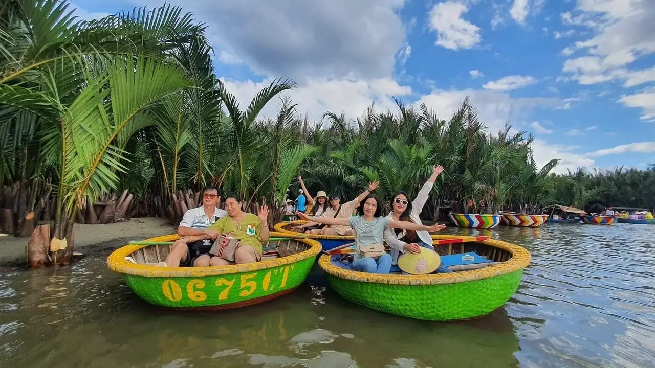 Trải nghiệm văn hóa của Hội An với tour Làm Đèn Lồng & Thuyền Thúng tại Làng Dừa Cẩm Thanh. Tham gia xưởng làm đèn lồng thực hành cùng các nghệ nhân địa phương và tự tay tạo ra chiếc đèn lồng truyền thống Việt Nam của riêng bạn. Sau đó, tận hưởng chuyến đi thư giãn trên thuyền thúng tre xuyên qua rừng dừa yên bình, nơi bạn có thể xem các màn trình diễn thuyền thúng, học các kỹ thuật đánh bắt cá truyền thống và khám phá cuộc sống sông nước địa phương. Tour này mang đến sự kết hợp hoàn hảo giữa văn hóa, thiên nhiên và các hoạt động vui chơi giải trí.
