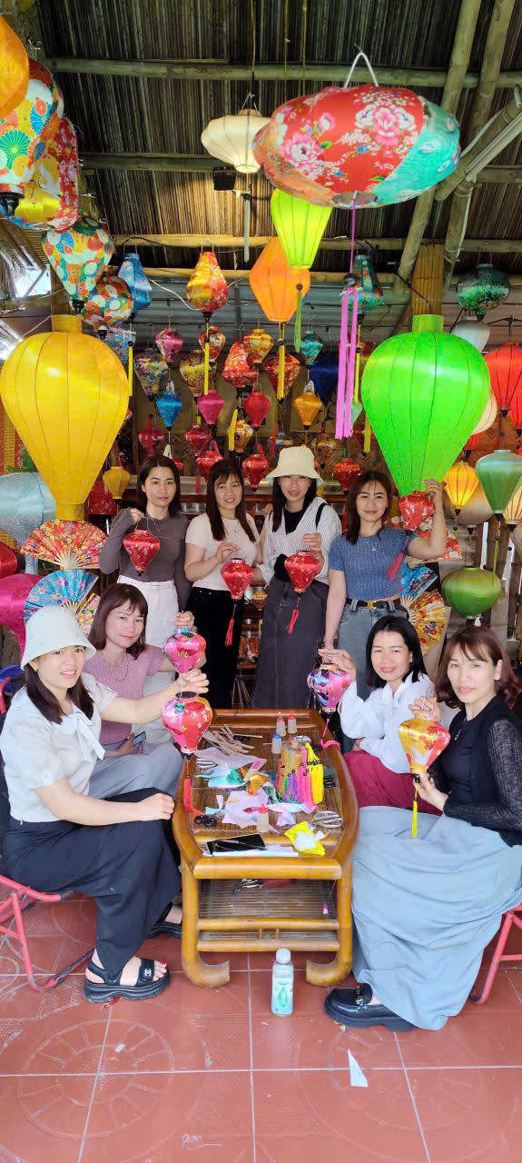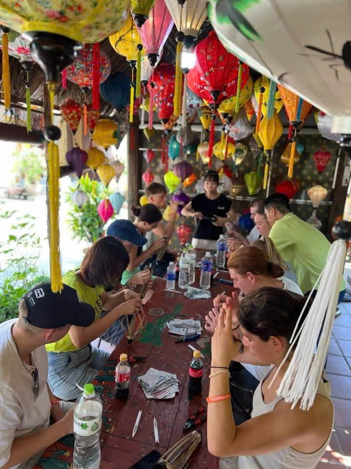 Học nghệ thuật làm đèn lồng từ các nghệ nhân địa phương lành nghề.